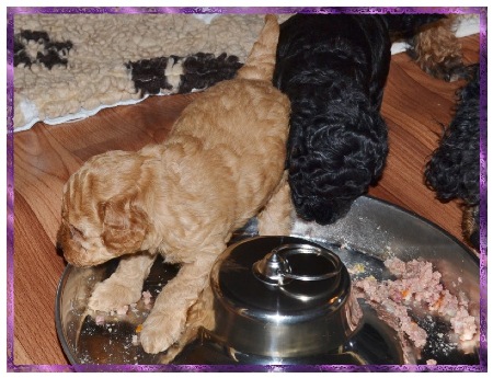 Unsere E's haben auch letzte Woche gut zugenommen und so langsam kommt Leben ins Haus ! Sie fangen an miteinander und mit den Großen zu spielen , knurren , versuchen zu bellen und wackeln durch den Welpenauslauf !