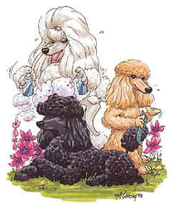 Gebürstet wird der Pudel möglichst täglich , aber mindestens 2-3 mal die Woche .Es dient dazu Staub , Schmutzreste , tote Haare und Schuppen zu entfernen . Man bürstet immer gegen den Strich , von der Rute zum Kopf , Beine von unten nach oben , die Seiten und der Bauch . Danach wird das Fell erst mit dem groben Kamm und dann mit dem feinen Kamm ebenfalls gegen den Strich gekämmt . Das Bürsten und Kämmen ist sehr gut für die Durchblutung der Haut . Der Pudel sollte etwa alle 6 bis 8 Wochen geschoren werden das sollte ein Fachmann übernehmen , damit Ihr Pudel auch aussieht wie ein Pudel . Der Hund sollte nach Bedarf gebadet werden - dies schadet ihm auf keinen Fall , solange Sie ein geeignetes Hundeshampoo verwenden . Stellen Sie den Pudel in eine Wanne (Stopfen offen lassen , kein Wasser einlaufen lassen ) und duschen sie ihn gut ab , dabei darauf achten ,das kein Wasser in Augen und Ohren läuft . Gut das Shampoo ins Fell einmassieren und sehr gründlich ausspülen bei Bedarf Vorgang wiederholen . Anschließend wird der Hund gut frottiert und trocken gefönt . Beim Fönen immer wieder das Fell gegen den Strich aufbürsten , damit es sich nicht unerwünscht kräuselt . Die Ohren sollten regelmäßig kontrolliert werden auf Fremdkörper und Entzündungen ( diese sollten dem Tierarzt vorgestellt werden ) . Die Härchen im äußeren Gehörgang regelmäßig zupfen . Bitte keines Falls mit einem Wattestäbchen ins Hundeohr .Ebenfalls sollte man auf die Augen achten , morgens mit einem weichen Tuch den Schlaf entfernen . Bei stark geröteten Augen , eitrigem Augenausfluss oder stark tränenden Augen bitte den Tierarzt aufsuchen . Während des Zahnwechsels immer wieder die Zahnstellung kontrollieren , da es vorkommt ,das die Milchzähne nicht ausfallen und somit die Stellung der bleibenden Zähne gefährdet . In diesem Fall bitte ebenfalls den Tierarzt aufsuchen. Um Zahnstein zu vermeiden fangen Sie am besten schon beim Welpen an die Zähne zu putzen 2-3 mal die Woche. Die Krallen sollten ebenfalls regelmäßig gekürzt werden , aber vom Profi um Verletzungen am Nerv zu vermeiden - bitte die Daumenkrallen nicht vergessen !!! Und nun noch die Pfoten , bitte auf Fremdkörper und Verletzungen untersuchen . Im Winter bitte vorm Spazierengehen mit Vaseline oder spezieller Pfotenpflegecreme eincremen , damit das Streusalz die Fußballen nicht angreift .